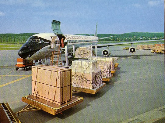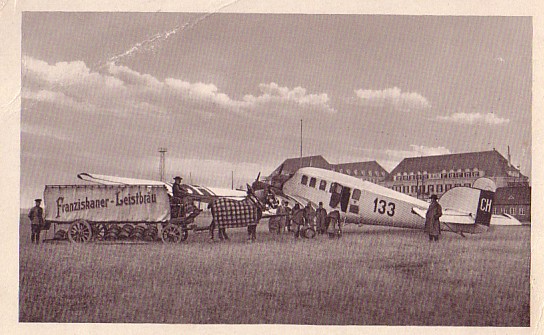 If you get an overseas parcel for Christmas it is probably about 90% certain that it came by air. This feature looks at postcards of air freight and, in particular the parcel carriers. As commented on in September, passenger airlines seem loth to issue many cards, and those they do issue rarely feature airliners. One bright spot in the industry remains the parcel carriers, and, to a lesser degree, the freight operations of the passenger carriers. Both still use cards as a publicity device, although with the rise of E-Commerce, the earlier use of the postcard to notify the progress of a parcel is now history. Apart from low weight, high value items such as diamonds, air freight did nor really get going until post WW2 - with the exception of that special form of freight , airmail which is a whole collectors world in itself. However one or two odd loads did justify a postcard, like this publicity card issued by Munich Franziskaner-Leichtbrau in the middle of the beer festival in October 1926. It claims to show the first air transport of beer and contracts the horse-drawn dray with a Swiss Ad Astra Junkers G.23.