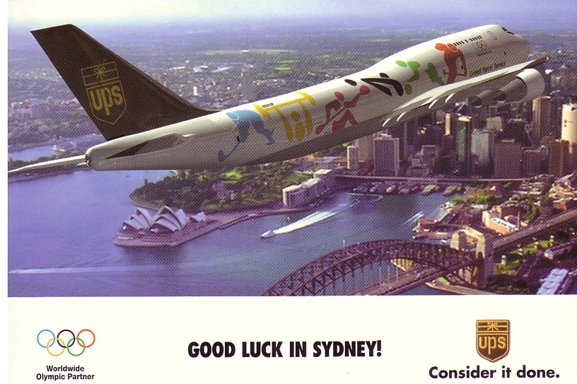 This business is dominated by a few global carriers UPS and FedEx from the US, TNT which has been in Australian ownership but now belongs to the Dutch Post Office , and DHL, now also a Post Office subsidiary, in this case Deutsche Post. This UPS 747 , painted in Sydney Olympic colours was from the Prague office and the only card known from UPS.