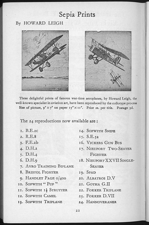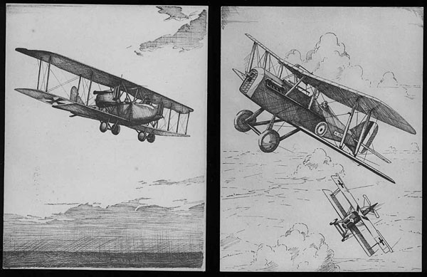 A stroke of luck led to my obtaining some early 1930’s sepia aviation postcards which are the same images illustrated in Howard Leigh’s book "Planes of the Great War". Fig 1 – S.E.5a and A.E.G Bomber :-