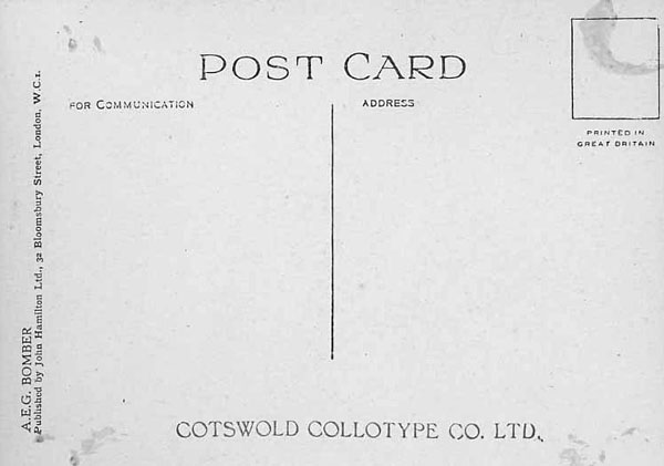 ![]() While the postcards are uncredited, the publisher is identified on the reverse: “Published by John Hamilton Ltd., 32 Bloomsbury Street. London, W.C.1”. (Figure 2….