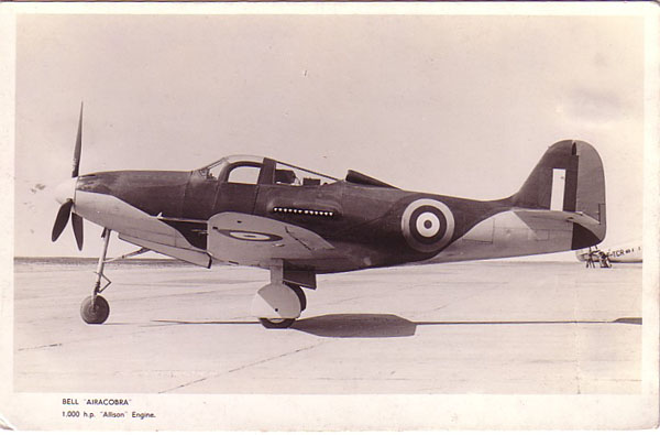 ![]() The said Crown Prince would later become King Hassan of an independent Morocco. He was born in 1929, so about 14 at the time of the card, ascended the throne as Hassan II in 1961 and was the longest serving Arab head of state at his death in 1999, having survived a number of coups and assassination attempts. The card is presumably part of propaganda for the return of French rule after the North African invasion of November 1942, the first major deployment of US forces against Germany. There is unlikely to be another contemporary card to show a Spitfire in USAAF markings. This one carries the squadron code HL-R and a name which ends in "rovince". A B-17 tail is in the background. From the HL code can be determined the squadron, 308th Fighter, of 31st Fighter Group. This squadron retained Spitfires into the Italian campaign , which it initially supported from a hurridly completed airstrip on the maltese island of Gozo. At the end of the war, the 31st Group, including the 308th had operated from 22 different bases and was credited with 570 kills. The reason why the 308th had Spitfires at all provides a link to another card. The 308th was formed in Jan 1942 and was originally to be equipped with the Bell P-39 Airacobra. However, concerns about the suitability of the P-39 led to the squadron embarking for Europe without its aircraft and being converted to a Spitfire squadron at Atcham, near Shrewsbury. The Spitfires were not replaced until April 1944 when P-51 Mustangs took over. The P-39 was an unorthodox fighter, it was powered by an in-line Allison engine buried in the fuselage, driving the propellor through a long shaft passing under the cockpit. It was also unusual in having a tricycle undercarriage. Both of these factors added complexity and another negative was the inadequate turbocharger which inhibited operations at altitude. On the plus side it had heavy protective armour and a high calibre 37mm cannon firing through the propellor hub. Indeed the whole design, including the mid-engine had been built around this armament. One squadron was delivered the the RAF, who declared it unsuitable due to low rate of climb and poor performance at altitude. This card shows one pre-delivery, somewhere in Canada – TCA Lockhed 14 CF-TCR in the background. Anonymous publisher but style similar to Flight magazine.