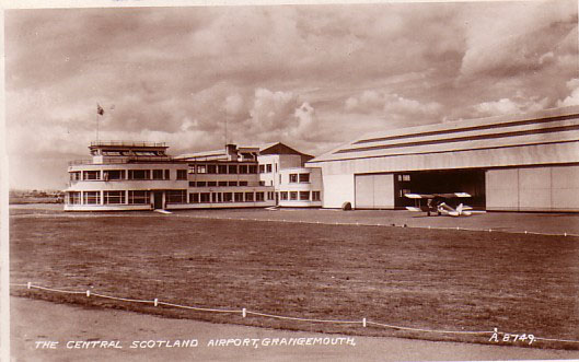 After closure, the buildings remained derelict with nothing resulting from various proposals for re-use. They were demolished in 1978 and the site is now a Tesco. Other parts of the site are now part of Renfrew High School and the M8 motorway includes a runway. A building that was once car hire offices became the “Viscount” pub.. On the East coast of Scotland, Edinburgh did not have scheduled air service before 1947. The nearest it got was the grandly named Central Scotland Airport at Grangemouth. Opened with appalling timing in July 1939, it briefly had services to London and by KLM to Amsterdam before being taken over by the RAF. It closed in 1955. The card is another Valentine, A8749 and shows a RAF Training School Tiger Moth. The buildings were of a standard pattern for such establishments. The site was re-developed for industry but the hangar building , much modified, is believed to survive.