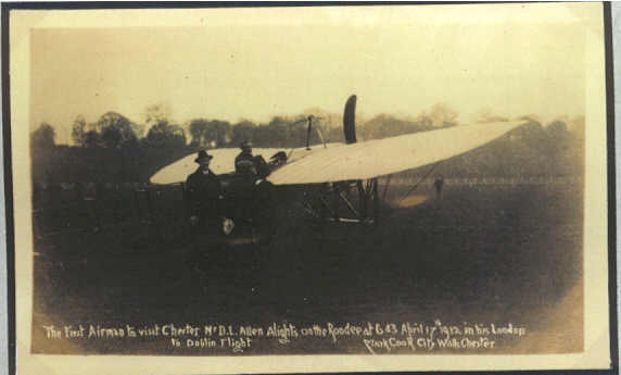 But there were soon lives lost in the attempts to cross the Irish Sea: Damer Leslie Allen was born in Limerick on January 30, 1878. He earned his wings on February 20, 1912, receiving Royal Aero Club Aviator’s Certficate No. 183. Only two months later, on April 17, 1912, he left Hendon, together with Denys Corbett Wilson, in order to become the first pilots to cross the Irish Sea with a flight Hendon – Chester – Holyhead – Dublin. Both pilots used a Blériot XI monoplane. Allen successfully reached Chester racecourse in the evening of April 17, at 6.43 p.m., being the first pilot to fly into Chester. He left Chester again early next morning at 6.00 a.m., flying over Holyhead at 7.50 a.m.