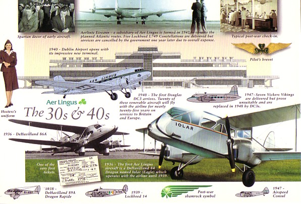 In 1947 the Irish Government established an airline to operate as a subsidiary of Aer Lingus and develop transatlantic routes for which there was seen to be heavy demand from the Irish descended population of the USA. Aerlinte Eireann ordered four of the latest L749 series Constellation. After production delays the first 3 were delivered in a formation flight across the Atlantic to Shannon in Sep 1947. But following a change of government the project was abandoned in 1948 after only proving flights had been flown. The Connies had also been used for Aer Lingus services to London and, briefly for 6 weeks, to Rome. They were subsequently all sold to BOAC and became their G-ALA- series.