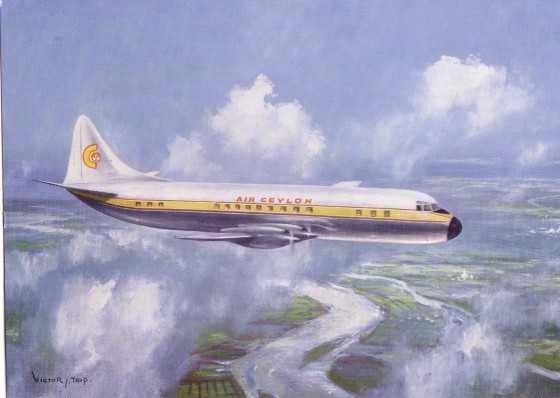 ![]() However no British aviation artist has produced any cards quite as crude as those that Victor Trip did for KLM in the 1960’s. He seemed to have a particular problem with the proportions of engines and fins. As KLM had an interest in Air Ceylon at the time, they also unfortunately had to suffer one of his misrepresentations of a Lockheed 188 Electra.