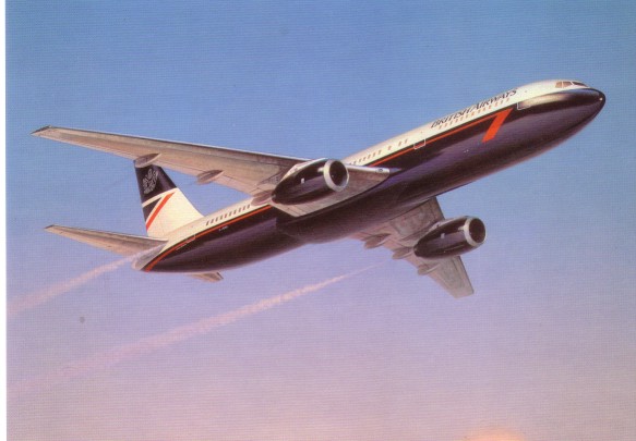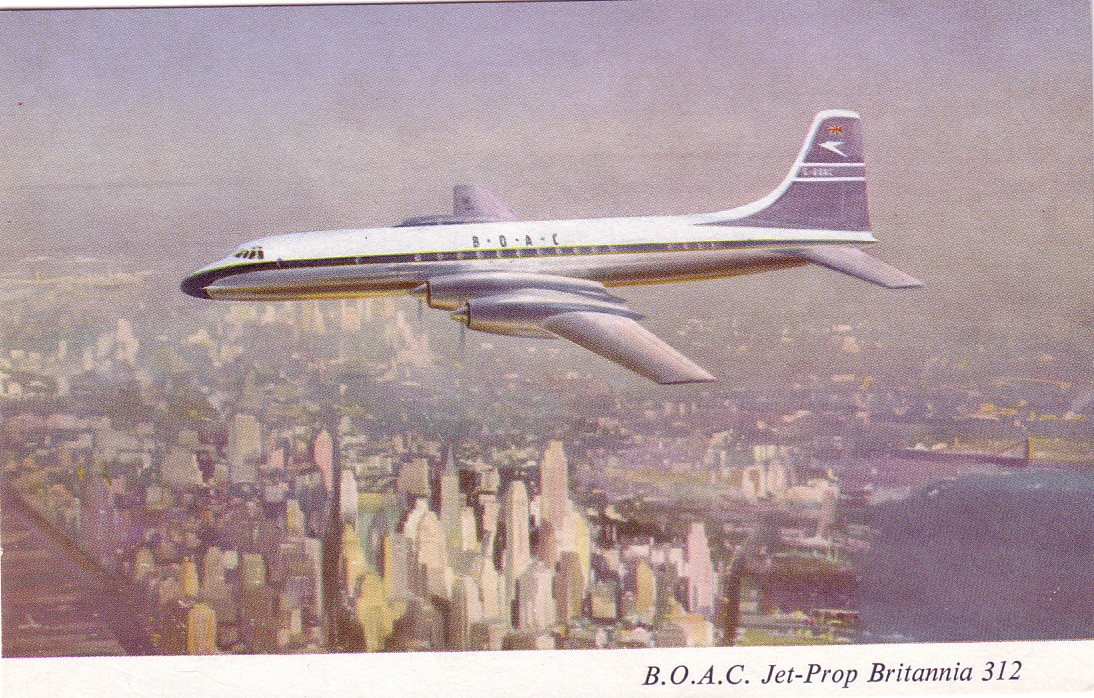 ![]() The commonly found BOAC blue-tail cards look as if they also have been by Wooton but are unsigned. This Britannia 312 over New York is well known.