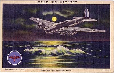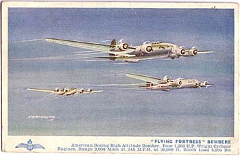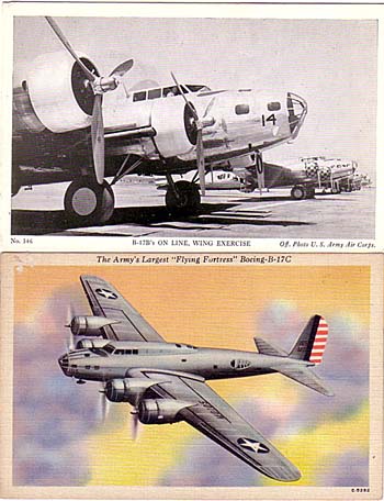 What relatively few B-17 cards there are, are concentrated in the period before the outbreak of WW2 and afterwards, including some of the many preserved examples as well as retrospective WW2 views. The following cards illustrate the B-17B and B-17C. The Black & White line up of B-17B’s is an Army recruiting card with back text Defend Your Country – Join the US Army, while the linen style colour B-17C back text refers to a non-stop 300 mile flight from Panama to Chile.