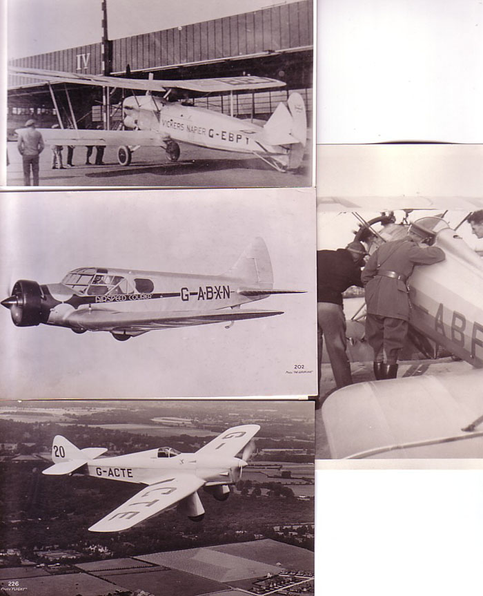 Here are some cards of types flown by Stack during this period Top Vickers Vivid G-EBPY flown by Stack for owner J R Chaplin 1931 (PC back photo) Middle : Airspeed Courier (Real Photos 202) Bottom : Miles Hawk Major as flown by Stack 1934(Real photos 226). Right : Blackburn Lincock G-ABFK(PC back photo – text Capt Stack & Capt Andrews explaining the Lincock to (Belgian) General Guillaume) – Stack on left.
