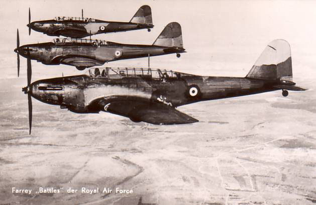 ![]() Stack is shown with the Mayor of Ramsgate on the occasion of the opening of service by Hillman DH Dragon to Ostend. July 1935. Ted Hillman had built up a bus and coach business post WW1 and was famous for having described pilots as basically bus-drivers - his operation was a sort of proto-Ryanair. However he did employ Amy Johnson as one of his “bus-drivers” in Summer 1934. It is not clear how long Stack was with Hillmans but he seems to have taken to the management role, introducing uniforms and standard procedures but also providing proper accommodation for pilots and ground staff. However, by 1938 he is delivering military aircraft to Turkey and then takes long-term employment as test pilot to the shadow aircraft factory established by Austin Motors at Longbridge, Birmingham to build the Fairey Battle. This is a Dutch card of 3 Battles in formation from 1939/40