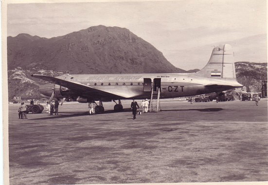 Linking this to the Indian piece, the same hills act as backdrop to this view of Bharat Airways VT-CZT – postcard quality paper and printing but a plain back photo. This must be between 1949-1953 when Bharat went into IAL.