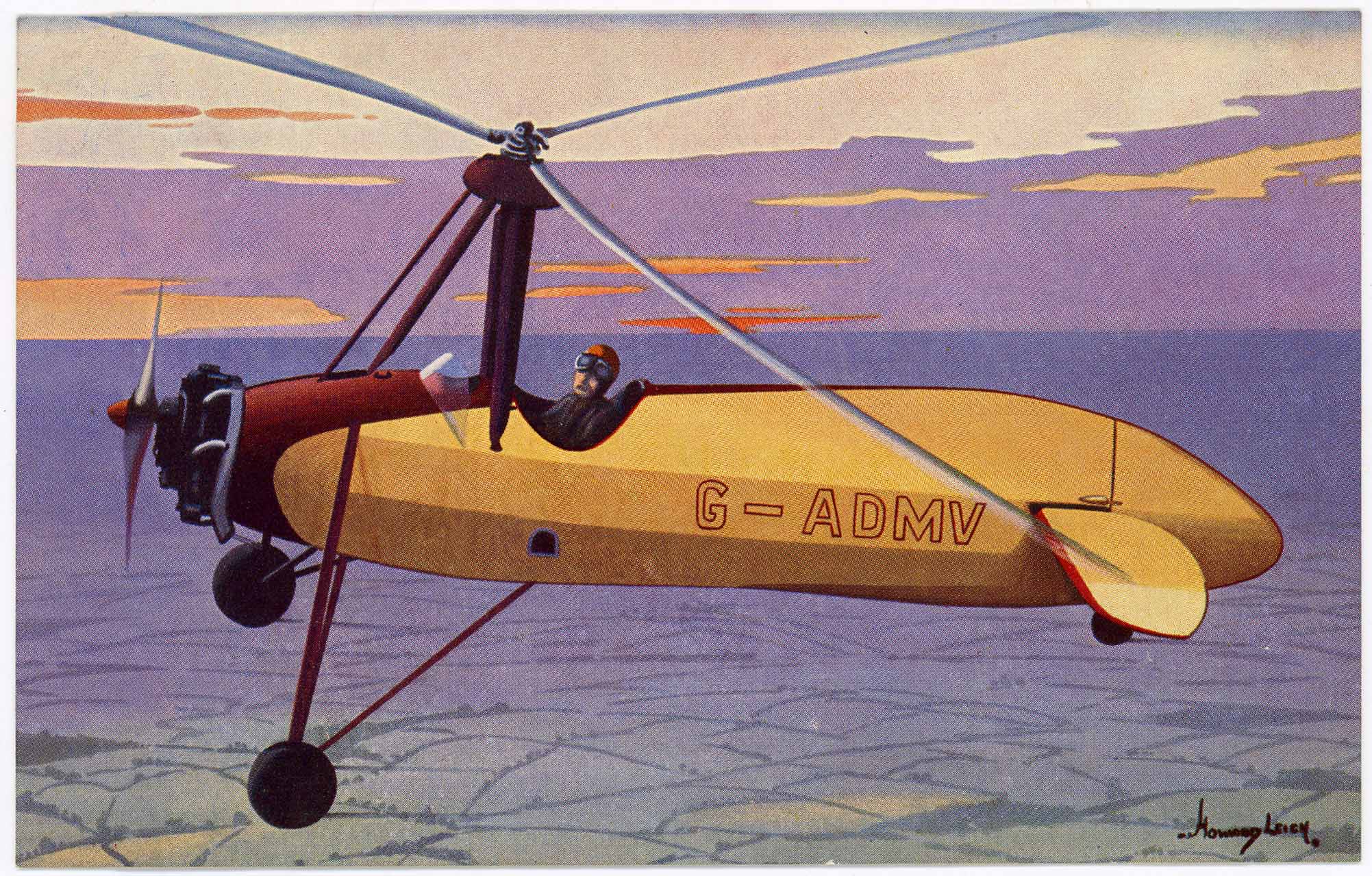The June edition will feature Phil Swales’ in depth researches into 30 s aviation artist, Howard Leigh. Leigh was the brother-in-law of Biggles author W E Johns and illustrated his books and their covers. He also produced artwork for books and postcards featuring the latest designs of the time and some retrospective WW1 craft. The cards were sold in sets, some with PC backs, some plain – not all are signed. For those unfamiliar with his work here are two examples as a foretaste. The untitled example is a Hafner Gyroplane.