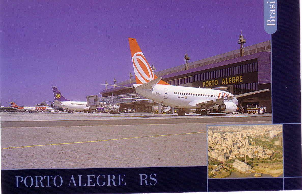 ![]() Low cost carrier Gol 737 features on this Porto Alegre airport card with an F100 of Tam and VARIG group 737