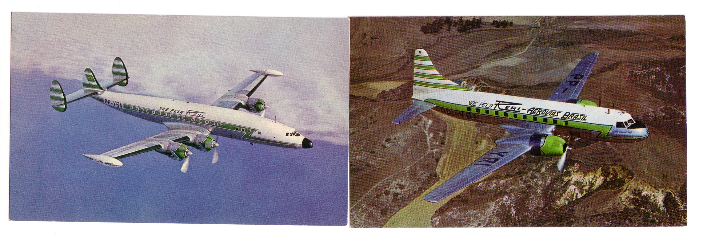 ![]() The dominant force in domestic airlines was REAL, founded in 1946, initially as a DC-3 operator but later moving up to Convairs and Super Constellations as on these cards.