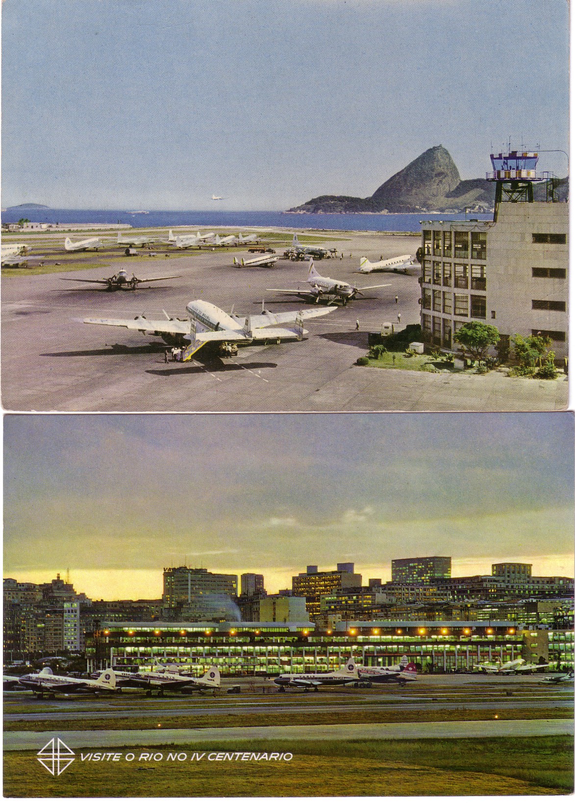![]() Only 2 km from central Rio it rapidly became the city’s airport for domestic and later international service, until being replaced by Galeao. Its origins in maritime operations are recalled by the proximity of the ramp to the harbour waters as shown on some of the following cards, including this air view which also shows the proximity to the city centre. 1960s judging by YS-11 and Electra on ramp but also lots of DC-3 and a Fairchild Packet.