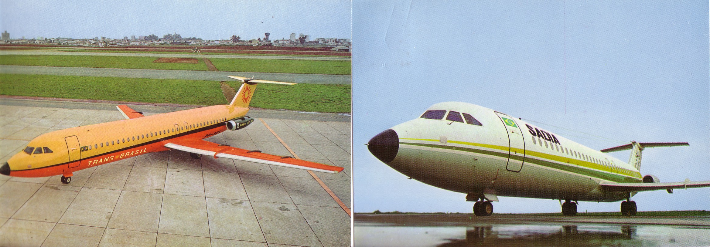 ![]() It might seem that VARIG had become a monopoly but VASP were still around, also now with 727s after Viscounts and 111s and new airlines had also been formed and prospered. Among these was another operator of British- built Heralds and 111 s, SADIA, founded 1955. The right hand card is in those titles but the back logo is overprinted with the new title of Transbrasil which appears on the left card .