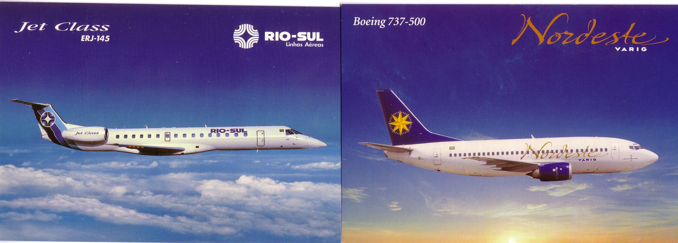 ![]() Before its financial troubles VARIG had continued to take over other companies, although the most recent ones retained their names while adopting a VARIG livery. Such were Rio Sul and Nordeste. The Nordeste card was also produced in identical form but with Rio Sul titles after that company’s takeover.