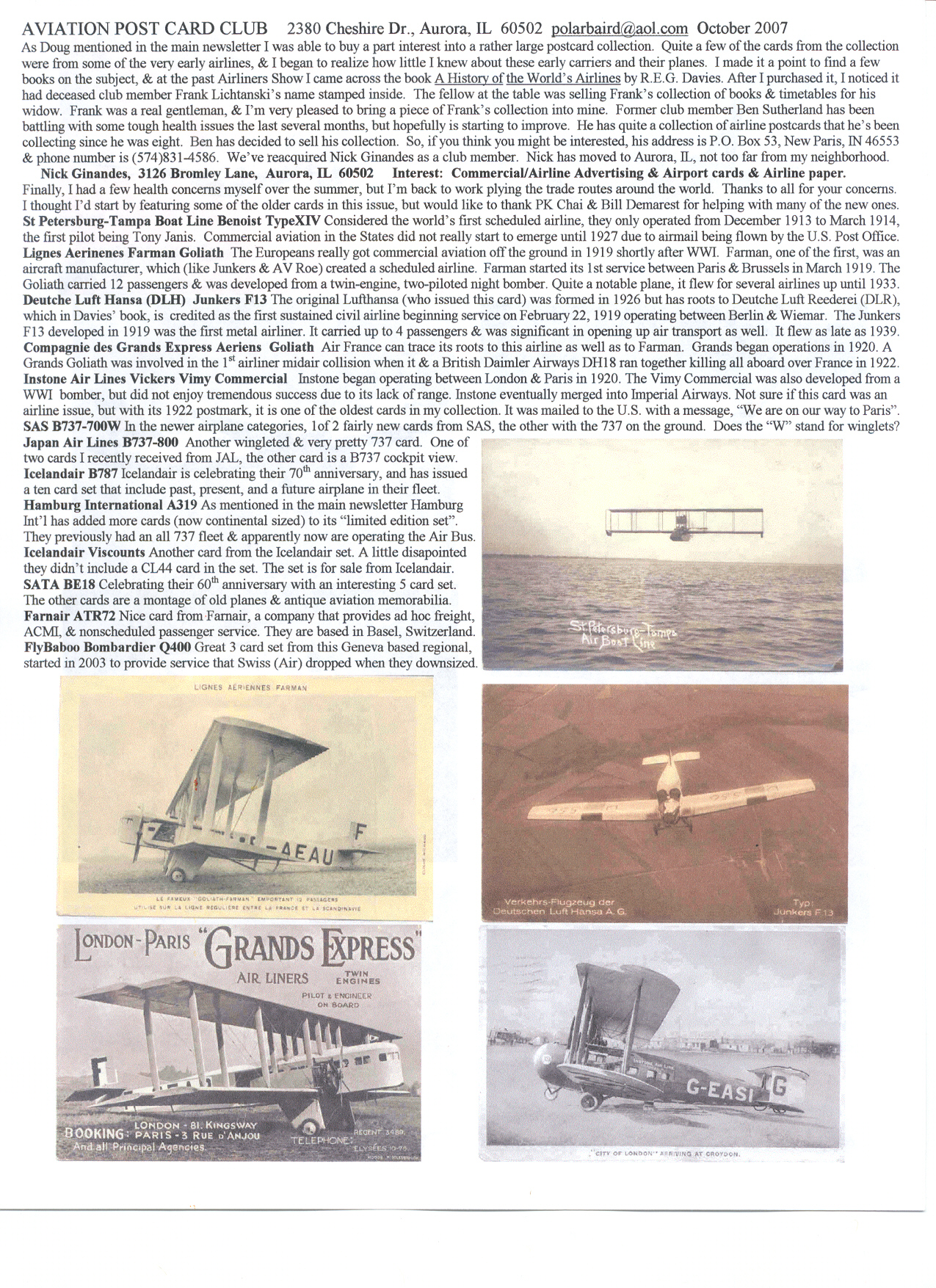 By Leonardo Pinzauti Undoubtedly aviation postcards are part of the advertising/promotion instruments airlines, airports, airframe manufacturers etc. have used since the very beginning of human flight. On the other side such post-cards have been widely used as an information vehicle, sometimes related to political and social issues. Combining these two elements is relatively easy because in recent times, postcards have been used to support protests, to solicit national and local administrations, to inform passengers etc. We have selected three issues which may be good examples of what an aviation-related postcard has to tell to a specific target.