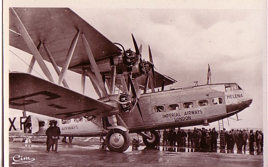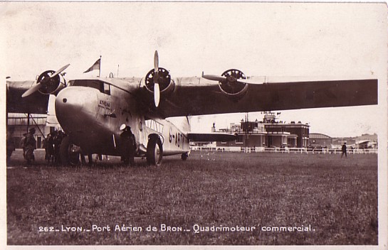 ![]() In later years Le Bourget publishers, notably Godneff continued to show Imperial aircraft, HP42s, Scylla and finally Ensign and Albatross, as in the example shown in the Internet report earlier. But Le Bourget was not the only French airport to host Imperial. Imperial also used French airports at Lyon and Istres, near Marseille. Atalanta G-ABTK Athena is shown at Lyon-Bron on a Cigogne card mailed 1934.