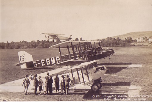 ![]() By contrast with over 50 cards of Imperial and antecedents in France, the rest of Europe only yields 14. But those from SWITZERLAND are notable. This is Handley page W10 G-EBMR at Basel by Editions Franco-Suisse.