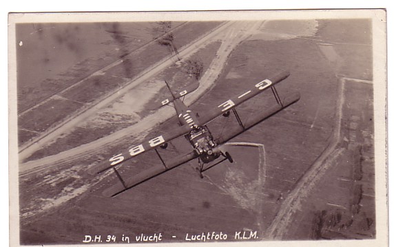 ![]() No cards are available to show of the early services to Belgium or Germany but KLM issued a card of a DH34 in an early series which curiously showed airliners of their competitors, presumably by the air photography unit (Luchtfoto) that later became KLM Aerocarto. G-EBBS of the Daimler Airway inaugurated Croydon-Amsterdam in October 1922, which may be when this was taken.