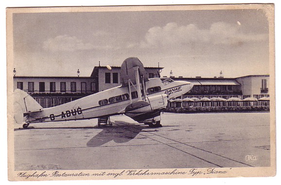 ![]() It did not survive to join Imperial being wrecked at Ivinghoe in 1923 – the wreckage being the subject of a set of cards from Halton Camp photographer Ratledge. Imperial returned to Northern and Eastern Europe in the late 1930s, using the DH86. From GERMANY G-ADUG Danae is at Cologne on a card issued by the airport restaurant.