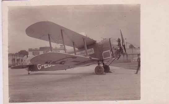 ![]() This rather crude (and battered) card of a Vimy Commerical at Istres may be Instone or Imperial. The date does not help as it was not mailed until 1931.