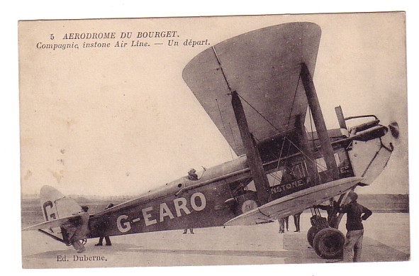 ![]() G-EARO subsequently passed to the Instone Air Line and was captured by another Le Bourget publisher, Editions Duberne on the next card Mailed in 1923 – no aviation content in the messages on either of these.
