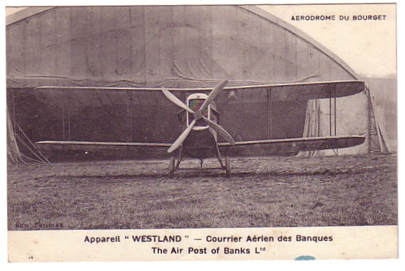 ![]() Editions Farineau also captured the rare Westland Limousine G-EAJL of Air Post of Banks Ltd. This outfit was set up by the Banks to speed up clearing of international transactions between London and Paris so that they used the latest technology to ensure that they had the benefit of the customers money for much longer. Plus ca change. The service ran from Sept to Oct 1920 only, but the card is dated 11 jan 1922.