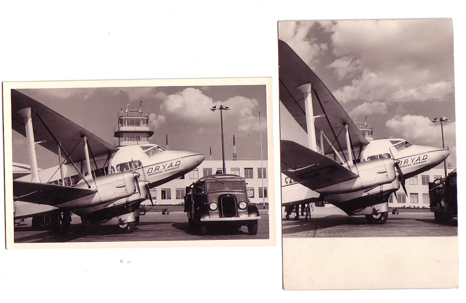 ![]() In CZECHOSLOVAKIA G-ADUH Dryad features on two cards from Prague , almost certainly taken within a few seconds of each other by Photocentrala Vitek. One was mailed in 1937.