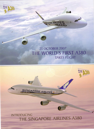 On a more positive note, the entry of the A380 into service has caused Singapore Airlines to resume issuing cards with aircraft on, and the two examples are shown on the front page.
