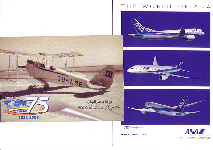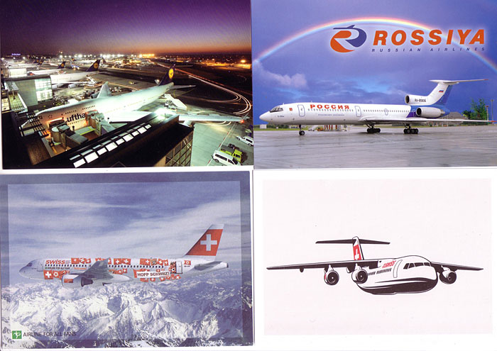Relative to the UK and USA, the airline postcard is in better health in the German speaking countries, so one can expect to find new issues at the annual Berlin World Travel Market. Although there were few surprises in the issuers, there were new cards this year from Air Baltic (737), All Nippon (787), Blue express (737), Egyptair (60th anniv DH Moth,) Hamburg International (A319), Icelandair (757), Lufthansa (747s, A330s, CRJ-900), Rossiya (A319, Tu154, Tu204), Mongolian (A310), Niki(A320), Swiss (BAe146, A320 – including a Euro 08 football colour scheme, A330), TunisAir (60th Anniv multiview) and Ukraine (737).