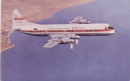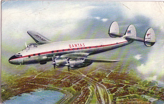 I have a number of Constellations and the nicest, I think, is this drawing, marked on the reverse Qantas Empire Airways operating on the London-Sydney Kangaroo service with a cruising speed of 260mph.