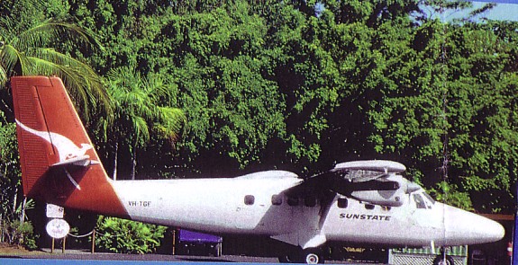 In recent times changes in the Austrlian airline world have brought Qantas back into internal services with many smaller aircraft joining group services including Twin Otters, Jetstreams, Short 360 and B.Ae146. This is a twin Otter in the colours of partner Sunstate