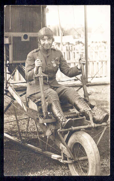 Even with the Web, it would have probably been a lot more difficult to find a male flyer – but the Web has many “womens history” sources as well as aviation sites so the early female flyers are particularly well covered. A comparison of photos on www.earlyaviators.com found a close match with the card in question and identified the subject as Ruth Law. Another site was actually in Australia – Monash University http://www.ctie.monash.edu.au/hargrave/law.html. which had this signed image as well as a biography, summarised below