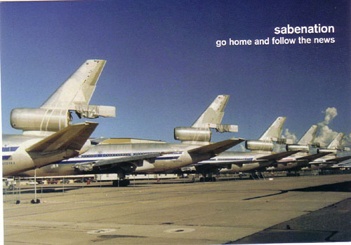 The sub-title “go home and follow the news” relates to the managements’ last message to the workforce. The back of the card, which is in English, states that the show was put on in 2004 in Brussels, Rotterdam, Hamburg, Berlin & Braunschweig. A bit of internet research reveals that it was in the style of the British WW1 musical “Oh what a lovely war” with its theme of incompetent British generals transferred to SABENA management. The fact that it existed at all says a lot about the position SABENA held in Belgian national lore. A pity therefore that the publisher could not find any stock photos of the SABENA fleet idle after the collapse but instead used a shot of some American DC-10s in one of the desert stores. These are probably some of the DC-10 fleet that spent some time at various storage sites awaiting conversion to freighters by FedEx. It thus joins the French Ailes B card of stored BA Tristars in the select group of civil desert store postcards.