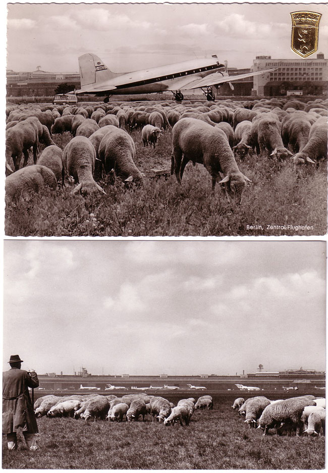 ![]() With Tempelhof due to close in 2008 it seems the sheep may have the last laugh ( or bleat) as the site may become a new park for Berlin.. Meanwhile it is the subject of probably the most impractical postcard ever produced – by Druckerei-Arnold. Unlike the Dusseldorf card featured last time, this panoramic card is not designed to fold despite being 17.5 inches (44 cms) long.