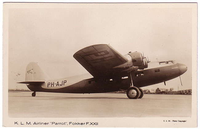 ![]() To offset any doubt as to whether the FXXII was on a Uk service here is another, PH-AJP “Parrot” . Unlike the above, this is English-captioned, Unmailed, but back pencil text “I saw this machine in hangar at Croydon.. 3rd May 1936” Both of these Fokkers were sold in the UK in 1939 , and taken over by the RAF. Operated as navigational trainers by Scottish Aviation , one crashed , but AJP (=G-AFZP) operated a few Prestwick-Belfast services up to 1947.