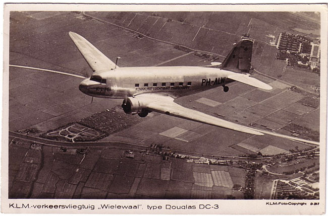 ![]() The DC-3 is PH-ALW “Wielewaal”. Unlikely to have been the DC-3 used, as it seems to have been a far East model . Caught there by the fall of Holland in 1940 it became PK-ALW, subsequently escaping again to Australia where it served with the USAAF, RAAF, ANA, Butler, Ansett and other carriers and from 2001 was in the Queensland Air Museum.