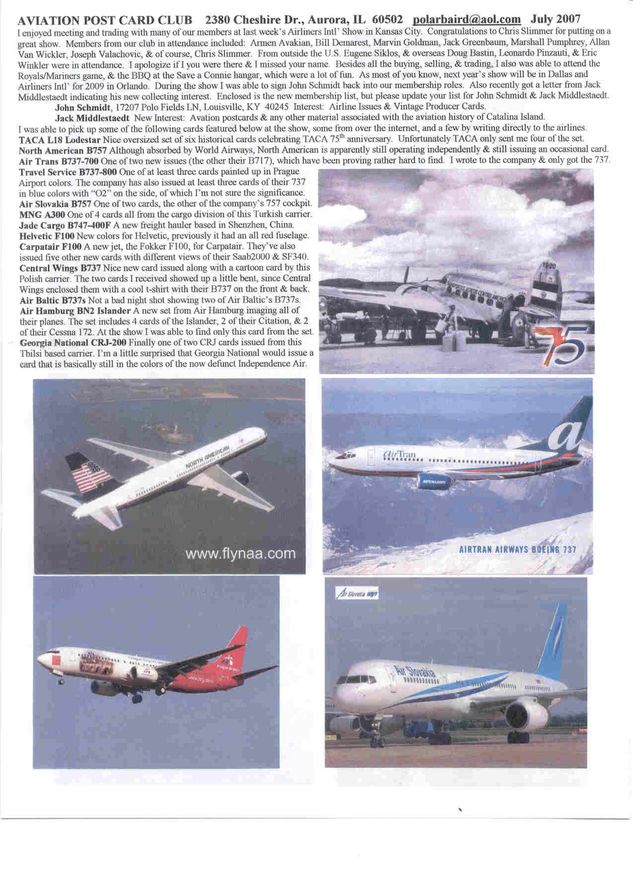 Members will have noticed that the US pages sometimes carry an earlier date than the main newsletter. This is because the US page is added to the main paper newsletter when it is circulated in the US in arrear of the UK edition, so it is actually published between UK paper editions.